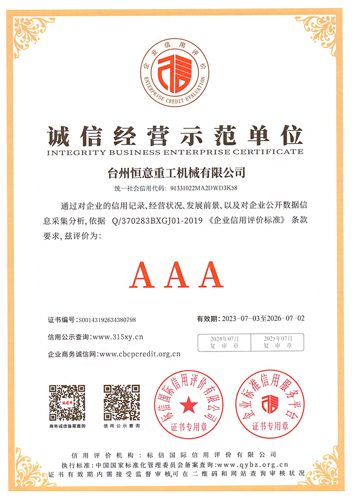 誠信經營示范單位 3A級